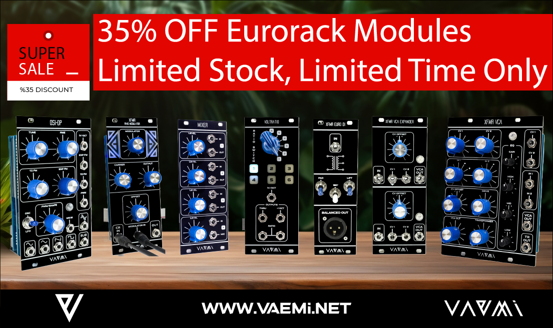 VAEMI Eurorack Series VAEMI Eurorack modules are available with a 35% discount until the end of March 2026.