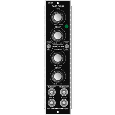 The DR-01 Bass Drum is the first of a new series of Corsynth modules dedicated to analog drum synthesis and it’s also the first module of this kind commercially available in MU format.