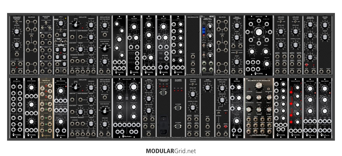 Achtung This Rack contains modules with incomplete power consumption specs: muSonics Vanilla Oscillators, Wave Slicer, Active Attenuators, muSonics Vanilla Modulation, muSonics Vanilla Envelope, Active Multiples, Transistor Logic, Mankato Filter, muSonics Vanilla Mixer, Envelope Interface, muSonics 902 VCA