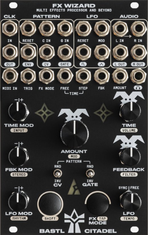 The CITADEL FX WIZARD is a eurorack module that empowers you to explore the limits of sound processing through modulation and modularity. Use 9 simple yet refined stereo effects, or go nuts with modulation and immerse in a powerful glitch and sound design heaven.