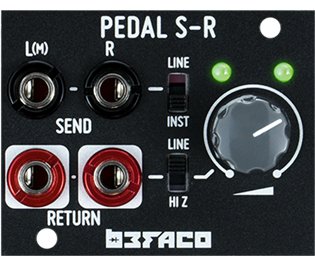 Pedal S-R is a stereo pedal insert that adapts modular signal levels to the levels and impedance of stereo or mono effects devices.