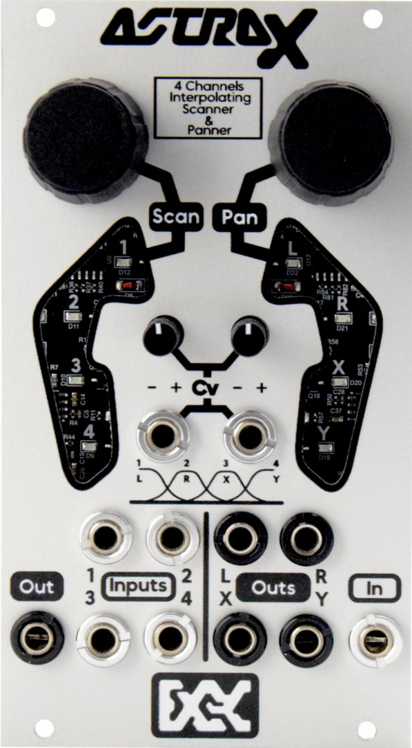 The scanner features four input channels, enabling smooth transitions between multiple audio or control voltage sources and combining them into a single output.