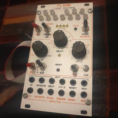 the module is a combination of quantizer and beat looper. a quantizer converts a continuous control voltage (on cv-input) in the range of 0..+5v into a stepped output voltage in the same voltage range. the scale assign the possible voltage states. the quantizer can be triggered per external trigger input or per link of the pulse from the beat section. the module has 5 banks with each 7 patches for scales: bank 1-4 with 28 fixed preset scales and bank 5 with 7 patches for individual user scales. the keynote transposes the actually scale. keynote and scale can be set by external cv inputs (keynote, scale) or manually per keyboard buttons. the playing of keynotes is recordable over max. 4 measures. the keyboard buttons can be used like a mini keyboard (jack keygate=gate out, jack cv out=notes, octave setting with cv-2 ruler). the cv inputs and outputs has the moog characteristic (1v/oct.).