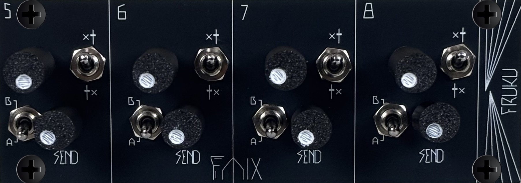 Fmix is a highly flexible, fully modular mixer. It features 8 mono inputs, 2 stereo FX sends, and a stereo aux input, giving you extensive routing options.