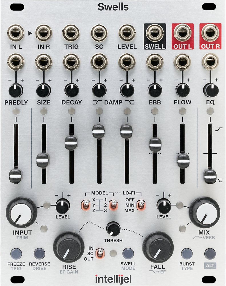 Intellijel Swells is a multi-model reverb module with a built-in SWELL Generator.