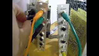 O-110 VCO1 (8HP) voltage controlled oscillator, triangle/square core, range about 3Hz to 25kHz, temperature compensated.