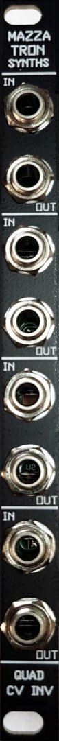 This 2HP Eurorack module will invert 4 separate CV signals. Any positive voltage at the input will be inverted negative at the output, and vice versa.