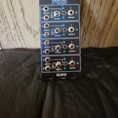 QUAND is a 12HP Eurorack Module with four separate AND gates. Each with an Invert switch on the B input. This feature makes it easy to turn on and off trigger signals manually, with trigger signal connected to input A, and nothing connecting to input B, signal at input A will pass to output Y when Invert switch is flipped up. This is also gate/CV controllable by signal into input B. QUAND will allow switching rates well into audio rate, which makes for some totally awesome sounds!