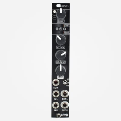 MSCL is a stereo compressor in 4 hp designed for your master bus to help "glue" your mix together. Inspired by the DBX "Over Easy" style compressor, it features independent attack and release knobs, output gain, and an all-in-one knob function for compression which decreases threshold, increases gain and ratio all with one turn. Limit Switch allows the MSCL to act more like a peak limiter. The threshold switch lets you compress signals of different amplitudes. It also features a side chain input for classic ducking sounds on stereo tracks.
