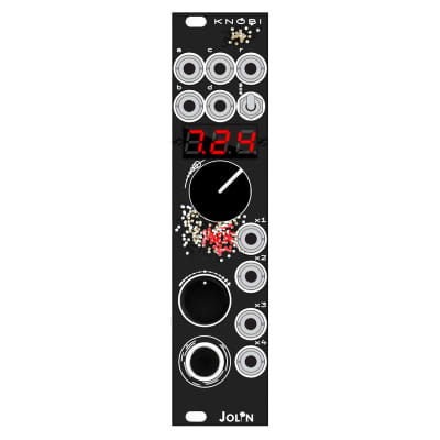 The pushbutton next to x4 adds a gate of 5v to the mix: with no input connected it will act as a manual gate output. Autopatch the r reference output into one of the inputs to use Knobi as a macro controller thanks the attenuator/offset knob and switch to set the range and the attenuverter.
