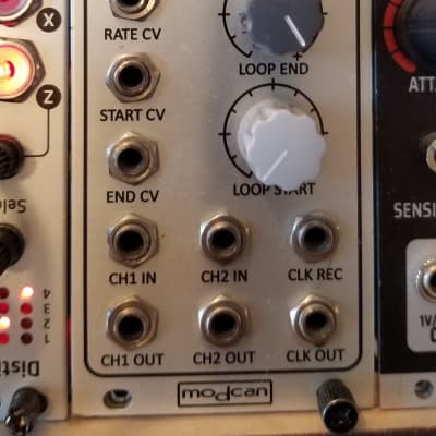 The Loop end and Loop start controls set the start and end of a recording in memory and also the loop start and end of the sample playback. Granular synthesis type effects can be had by CV controlling the loop points in real-time.