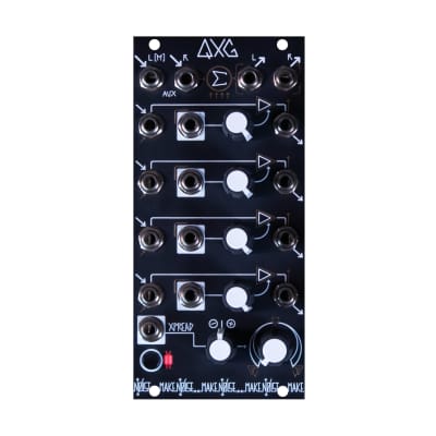 The Quad Stereo Gate (QXG) music synthesizer module is a Four Channel Stereo Low Pass Gate and Mixer. Like the DXG before it, the QXG utilizes a new low pass gate circuit that does not use vactrols. This circuit is 100% analog and its response was arrived at after many months tailoring it to meet or exceed the expectations that have been set by all the vactrol low pass gates that Make Noise has created over the years. Additionally the QXG adds a Vactrol button to select between a Slow, low-pass-gate-like response emulating the decay time of a vactrol (Vactrol button ON), and a Fast precision response that still maintains the gentle filtering characteristic (Vactrol button OFF). Fast response can be especially useful when patching QXG with complex and quickly-changing functions such as those generated by PoliMATHS with the OSC circuit in use. The QXG also includes a Stereo Sum Output with voltage controllable Stereo Spread to quickly route all four channels across the stereo field. Each channel also has an individual output that removes the channel from the Sum when patched. In addition, QXG includes signal and control input headers for creating pre-patched connections from the outputs of PoliMATHS and MultiMod.