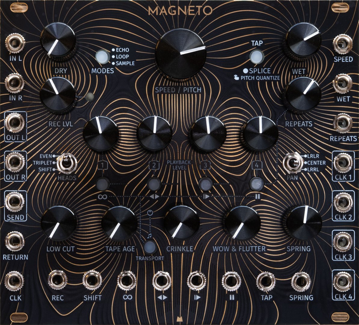 Black&Gold replacement panel for Strymon Magneto eurorack module.