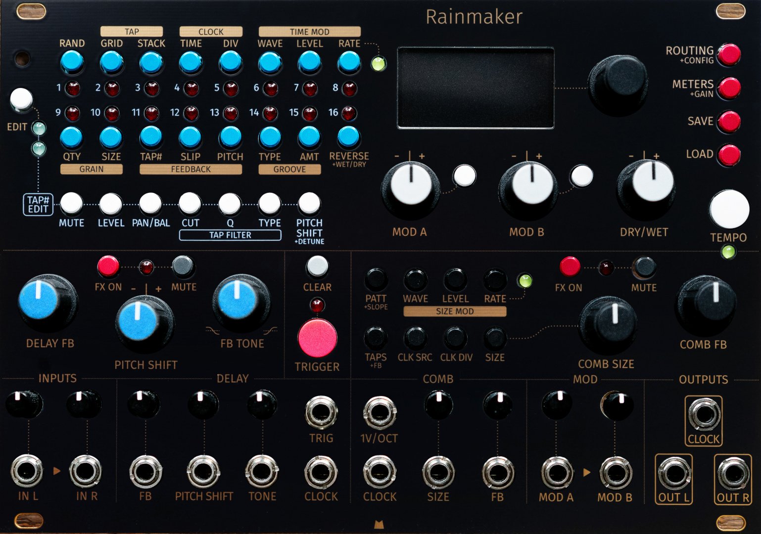 Black & Gold replacement panel for Intellijel Rainmaker eurorack module.