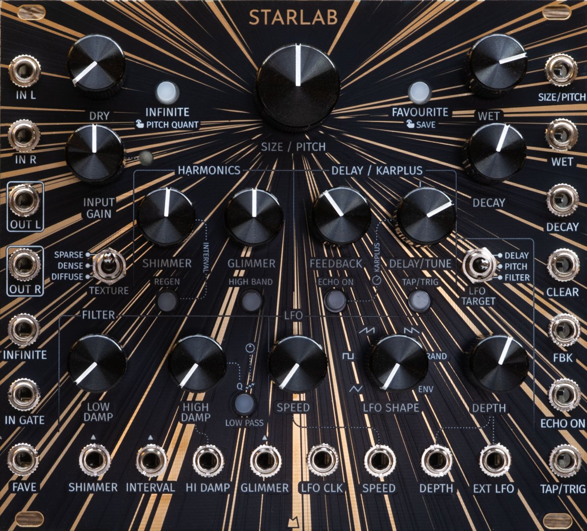 Black&Gold replacement panel for Strymon Starlab eurorack module.