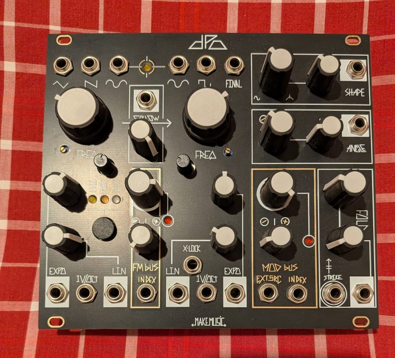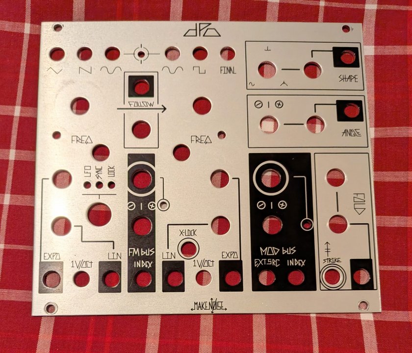 The black pannel is an Audio Parasites one, the only diference between this and the original make noise pannel is where it originaly says Make Noise this one says Make Music.