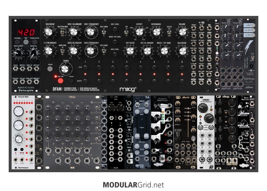 Power Consumption: 1052 mA +12V | 303 mA -12V | 0 mA 5V | Depth: 45 mm | Number of Modules: 19 | Data Sheet Achtung This Rack contains modules with incomplete power consumption specs: none