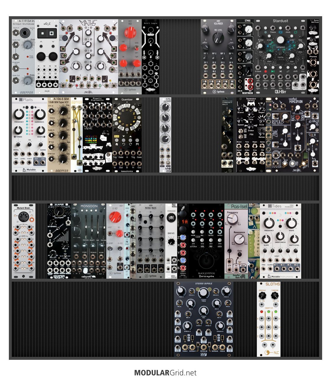 Achtung This Rack contains modules with incomplete power consumption specs: Triple Sloth white panel