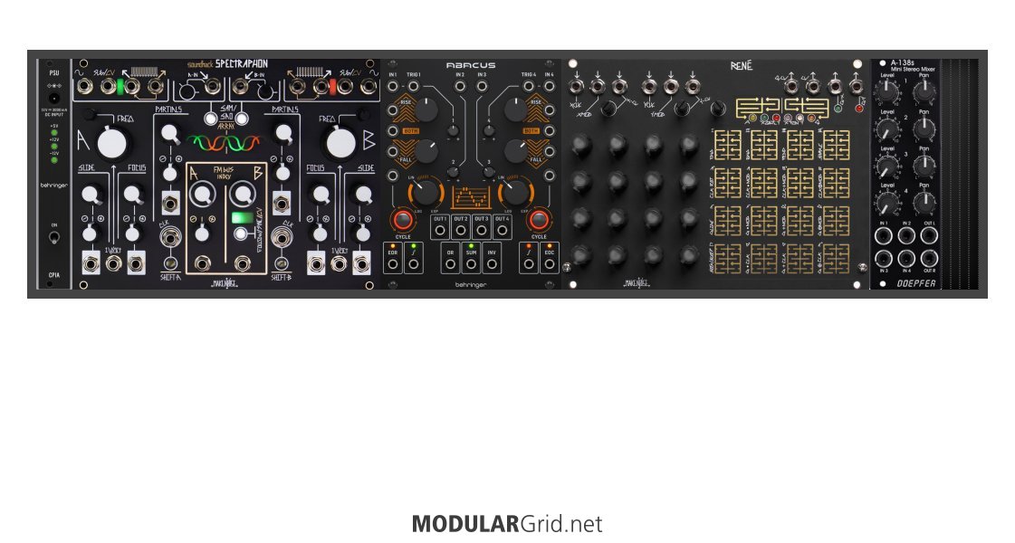 Power Consumption: 336 mA +12V | 105 mA -12V | 0 mA 5V | Depth: 39 mm | Price: $1,039 | Number of Modules: 4 | Data Sheet Achtung This Rack contains modules with incomplete power consumption specs: none