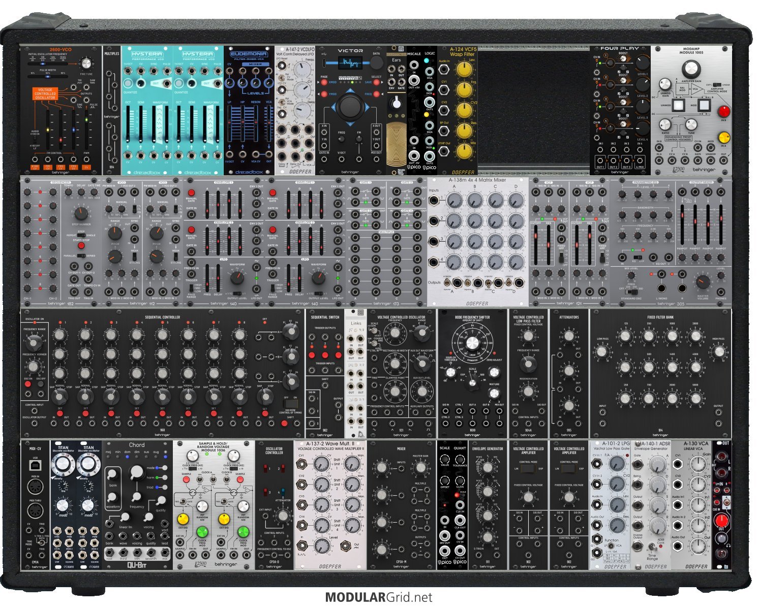 Power Consumption: 2268 mA +12V | 1486 mA -12V | 0 mA 5V | Depth: 56 mm | Price: $3,929 | Number of Modules: 46 | Data Sheet Achtung This Rack contains modules with incomplete power consumption specs: none