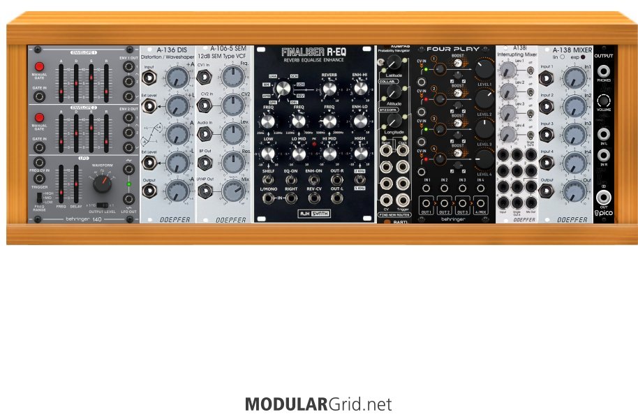 Power Consumption: 365 mA +12V | 252 mA -12V | 0 mA 5V | Depth: 55 mm | Price: $1,179 | Number of Modules: 9 | Data Sheet Achtung This Rack contains modules with incomplete power consumption specs: none
