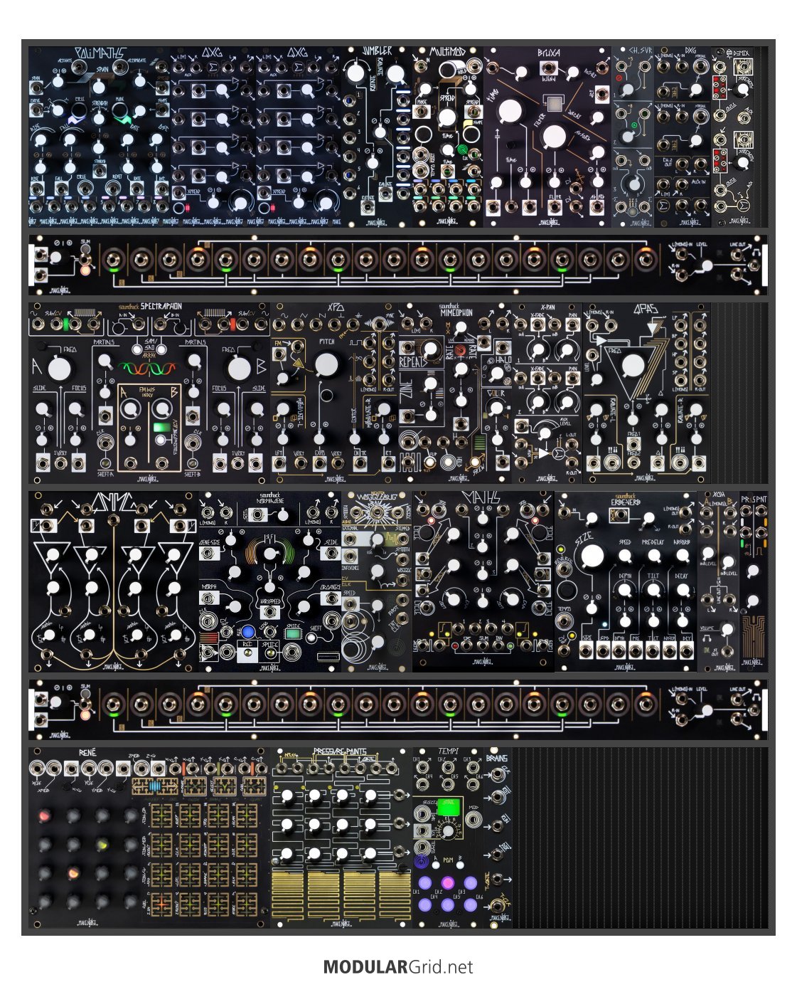 Power Consumption: 2687 mA +12V | 1253 mA -12V | 0 mA 5V | Depth: 48 mm | Price: $8,017 | Number of Modules: 27 | Data Sheet Achtung This Rack contains modules with incomplete power consumption specs: none