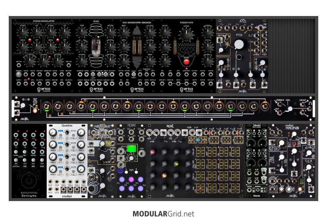 Power Consumption: 1299 mA +12V | 537 mA -12V | 0 mA 5V | Depth: 45 mm | Price: $3,905 | Number of Modules: 13 | Data Sheet Achtung This Rack contains modules with incomplete power consumption specs: none
