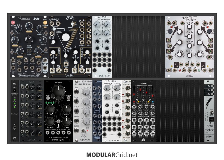 Power Consumption: 645 mA +12V | 485 mA -12V | 0 mA 5V | Depth: 50 mm | Price: $2,170 | Number of Modules: 13 | Data Sheet Achtung This Rack contains modules with incomplete power consumption specs: none