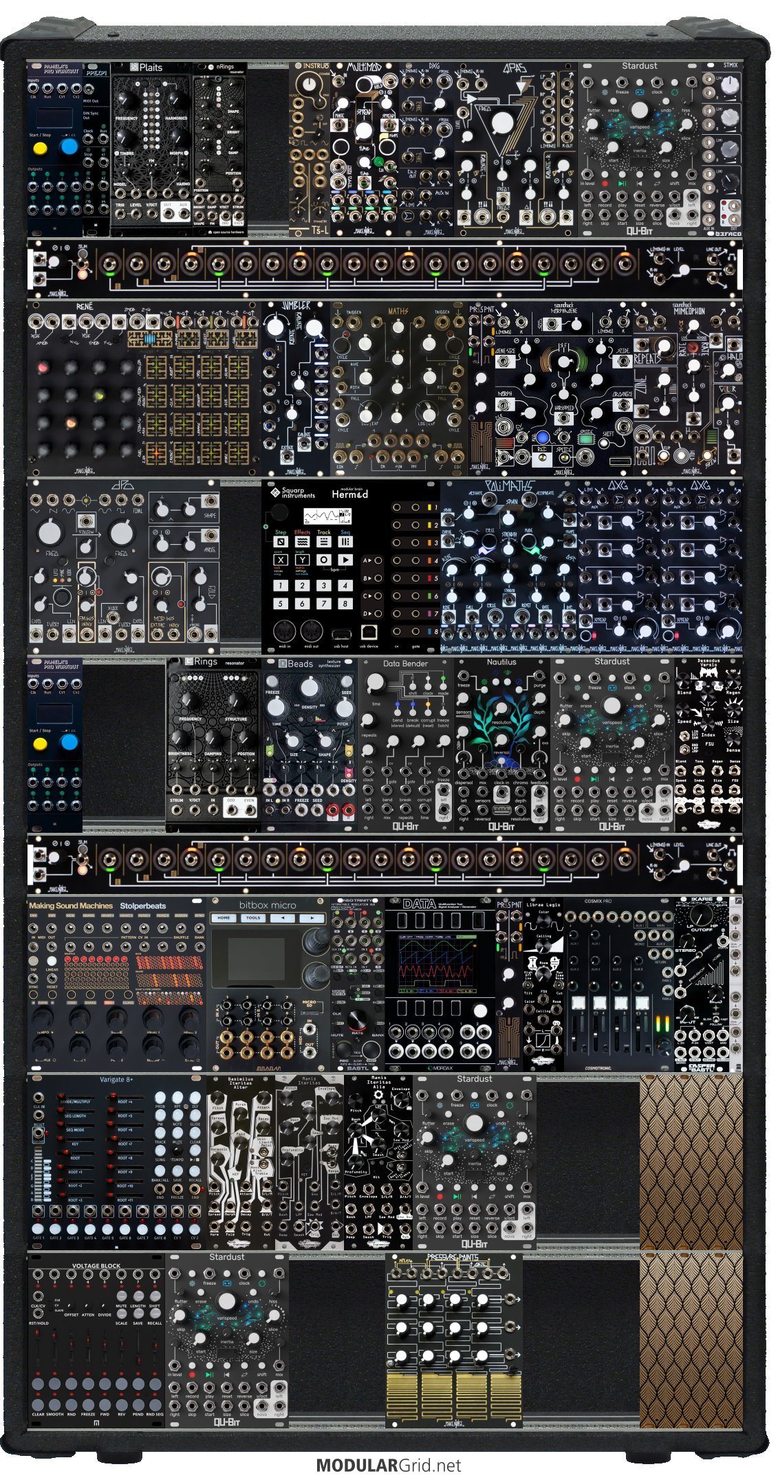 Power Consumption: 5623 mA +12V | 1587 mA -12V | 180 mA 5V | Depth: 43 mm | Price: $15,150 | Number of Modules: 53 | Data Sheet Achtung This Rack contains modules with incomplete power consumption specs: none