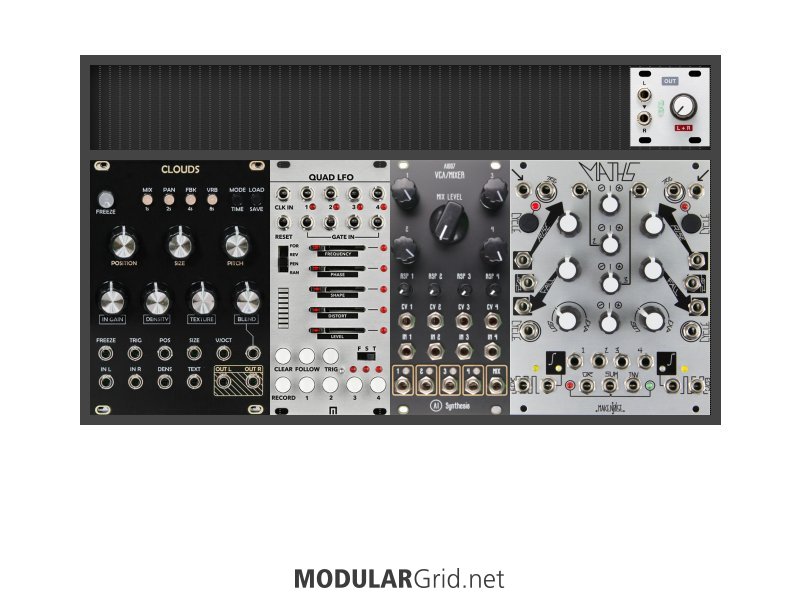 Power Consumption: 364 mA +12V | 169 mA -12V | 0 mA 5V | Depth: 36 mm | Price: $1,050 | Number of Modules: 6 | Data Sheet Achtung This Rack contains modules with incomplete power consumption specs: none
