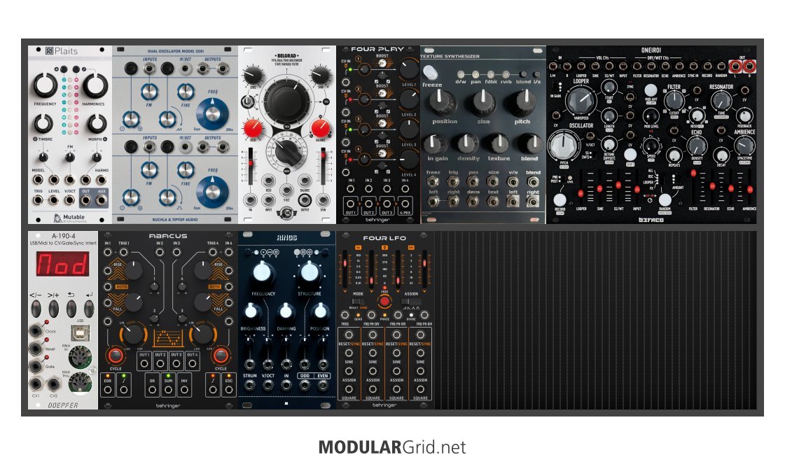 Power Consumption: 1060 mA +12V | 421 mA -12V | 0 mA 5V | Depth: 50 mm | Price: $1,916 | Number of Modules: 10 | Data Sheet Achtung This Rack contains modules with incomplete power consumption specs: none