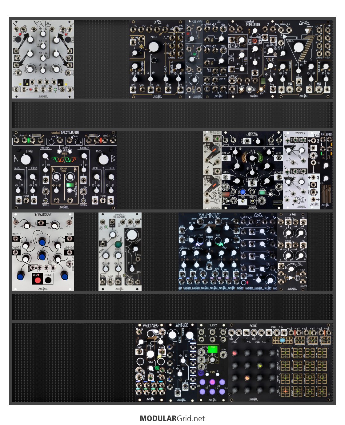Power Consumption: 1902 mA +12V | 507 mA -12V | 0 mA 5V | Depth: 45 mm | Price: $4,873 | Number of Modules: 14 | Data Sheet Achtung This Rack contains modules with incomplete power consumption specs: none