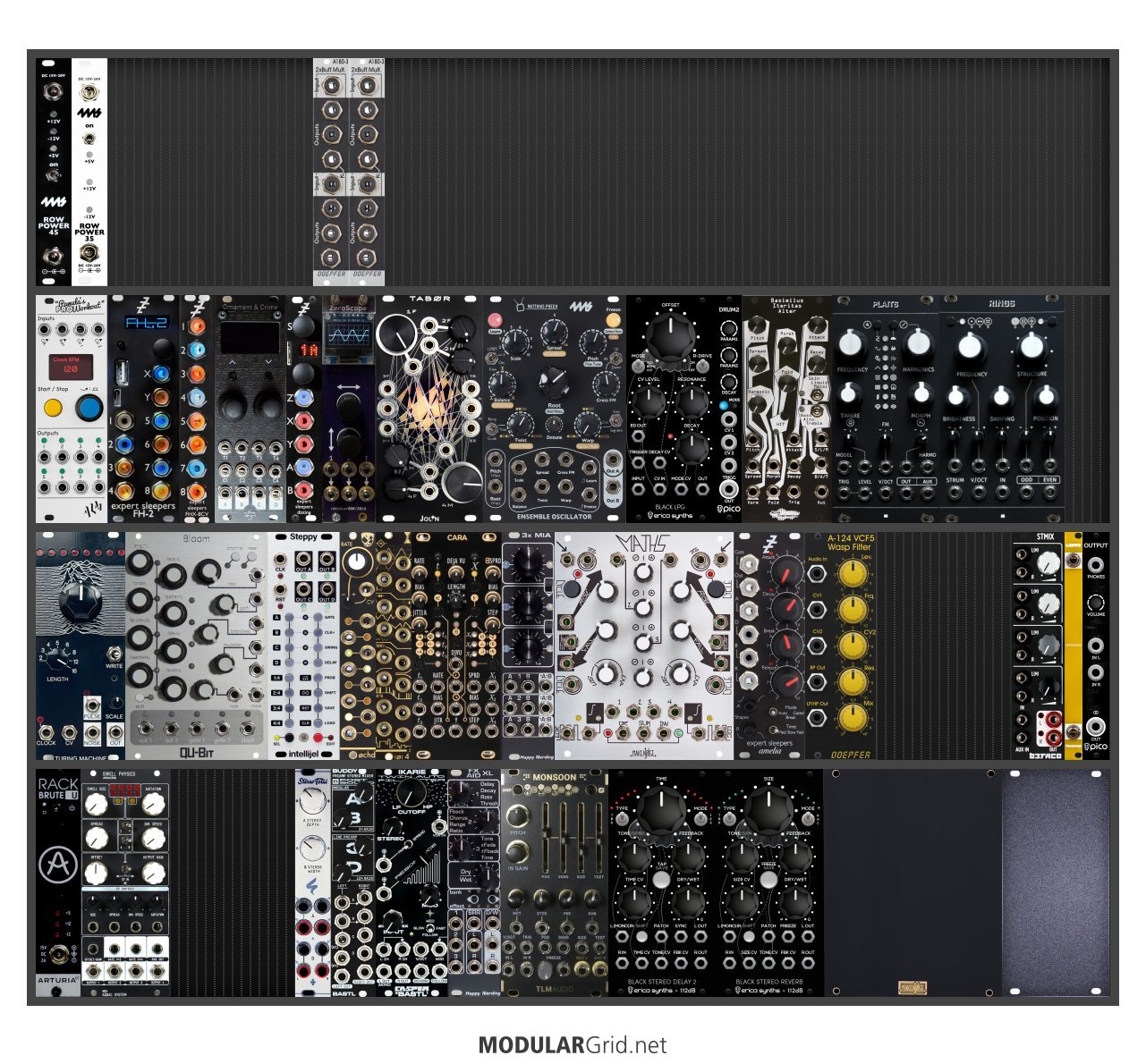 Power Consumption: 2240 mA +12V | 985 mA -12V | 90 mA 5V | Depth: 80 mm | Price: $8,566 | Number of Modules: 41 | Data Sheet Achtung This Rack contains modules with incomplete power consumption specs: none