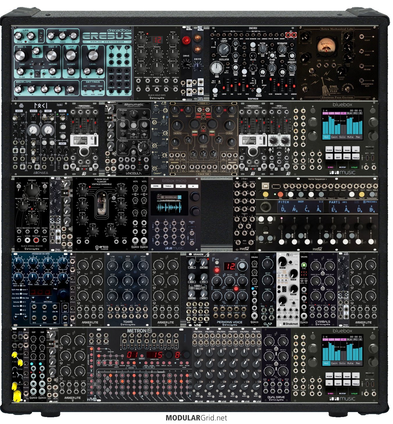 Power Consumption: 4784 mA +12V | 1745 mA -12V | 1706 mA 5V | Depth: 53 mm | Price: $14,838 | Number of Modules: 53 | Data Sheet Achtung This Rack contains modules with incomplete power consumption specs: none