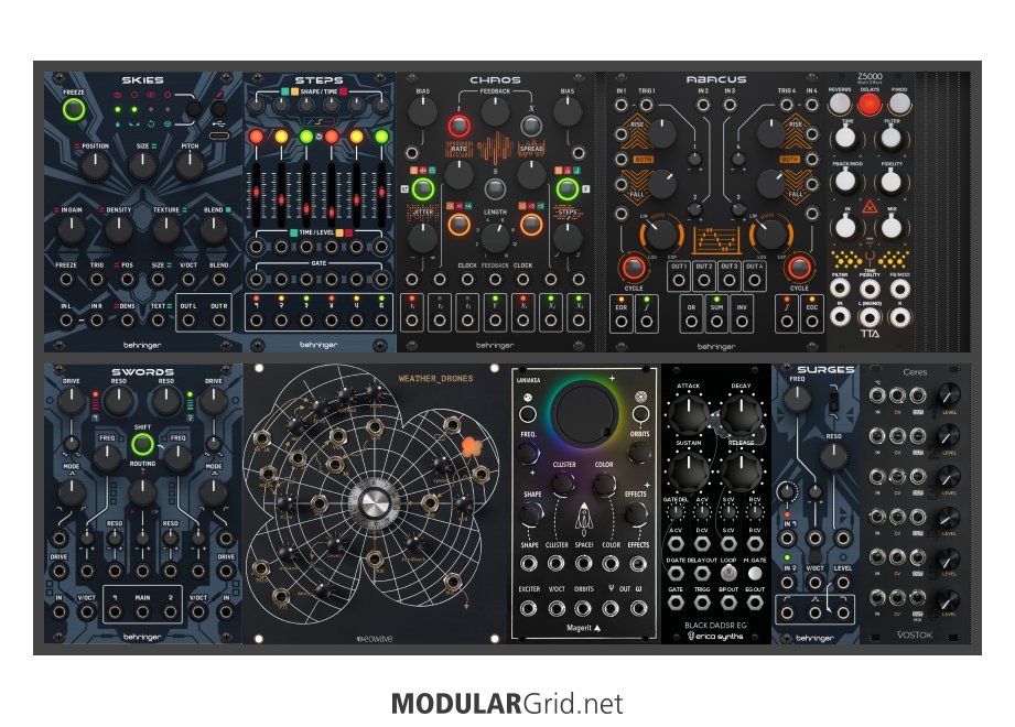 Power Consumption: 1077 mA +12V | 468 mA -12V | 0 mA 5V | Depth: 52 mm | Price: $1,691 | Number of Modules: 11 | Data Sheet Achtung This Rack contains modules with incomplete power consumption specs: none