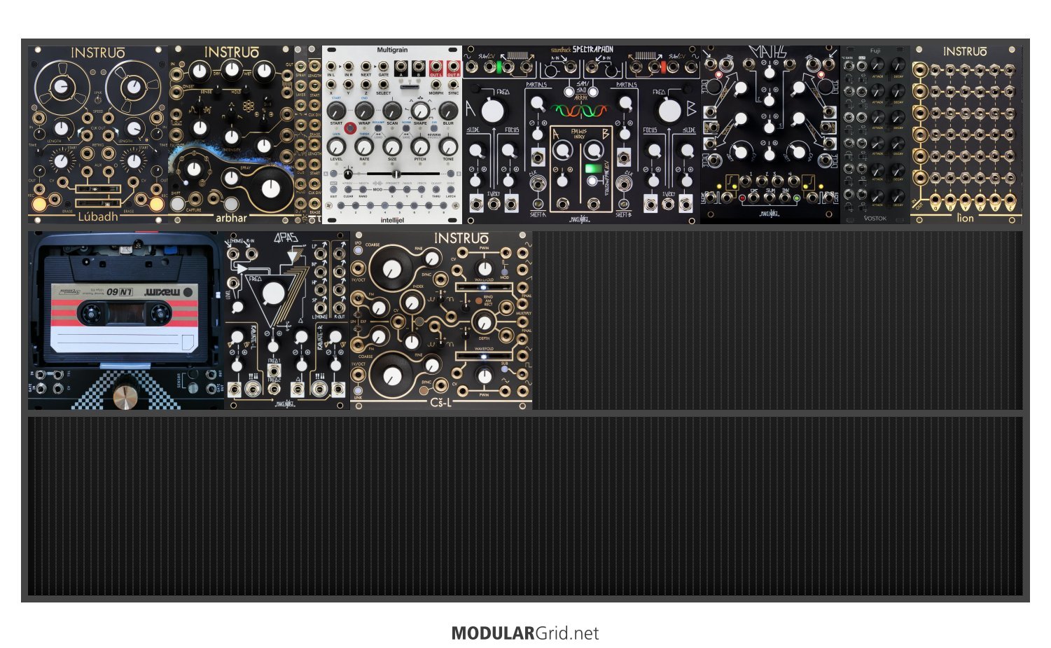 Power Consumption: 1952 mA +12V | 598 mA -12V | 0 mA 5V | Depth: 42 mm | Price: $4,509 | Number of Modules: 12 | Data Sheet Achtung This Rack contains modules with incomplete power consumption specs: none