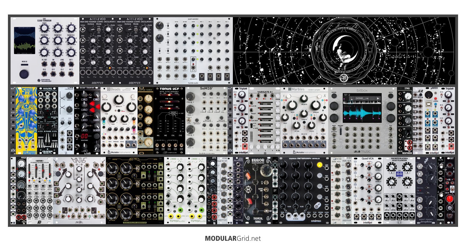 Achtung This Rack contains modules with incomplete power consumption specs: Tropical Noise