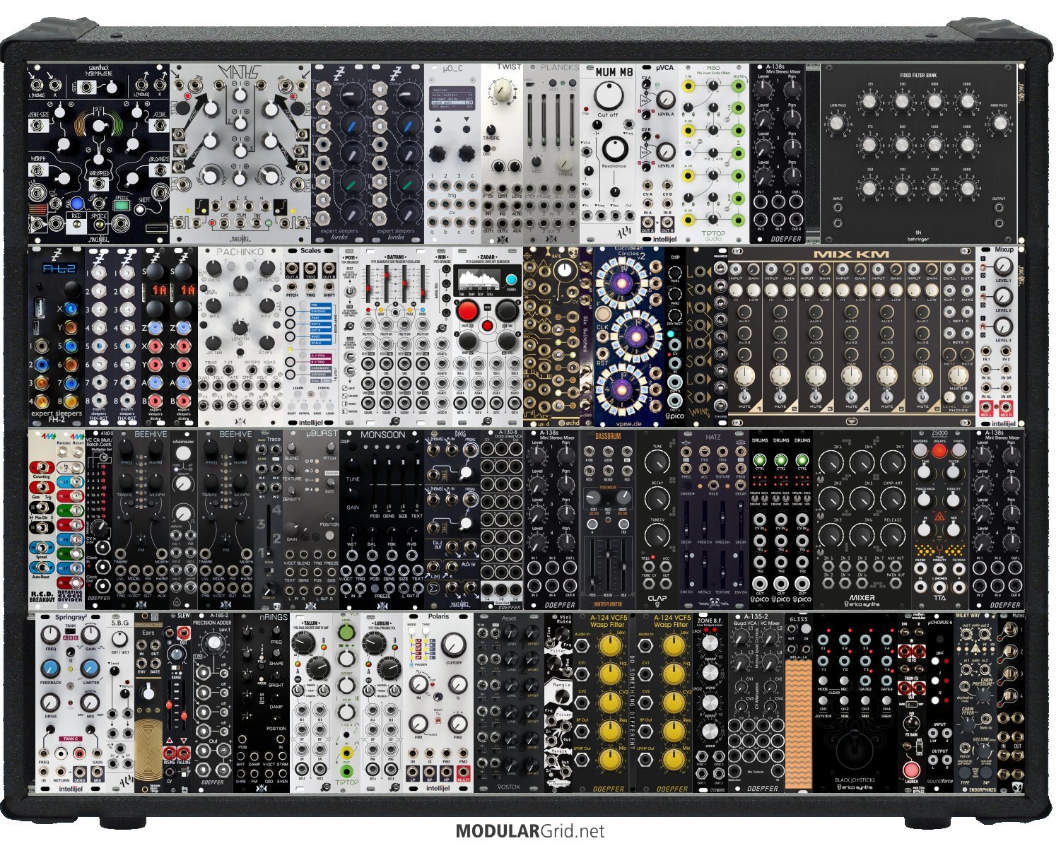 Power Consumption: 3998 mA +12V | 1795 mA -12V | 70 mA 5V | Depth: 48 mm | Number of Modules: 79 | Data Sheet Achtung This Rack contains modules with incomplete power consumption specs: none
