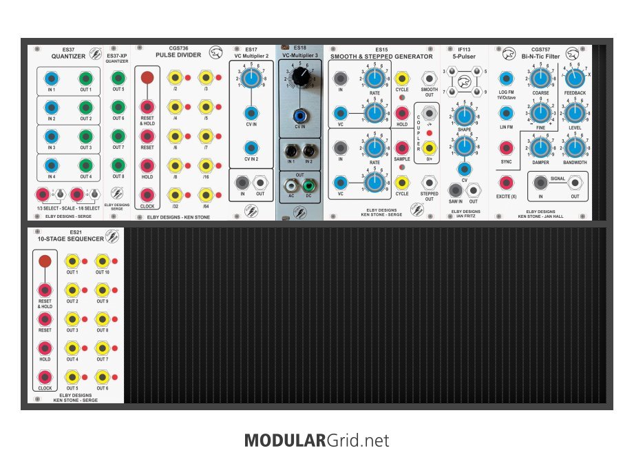 Achtung This Rack contains modules with incomplete power consumption specs: ES37 - Quantizer, ES37 - Expander, ES21 - 10-Step Sequencer