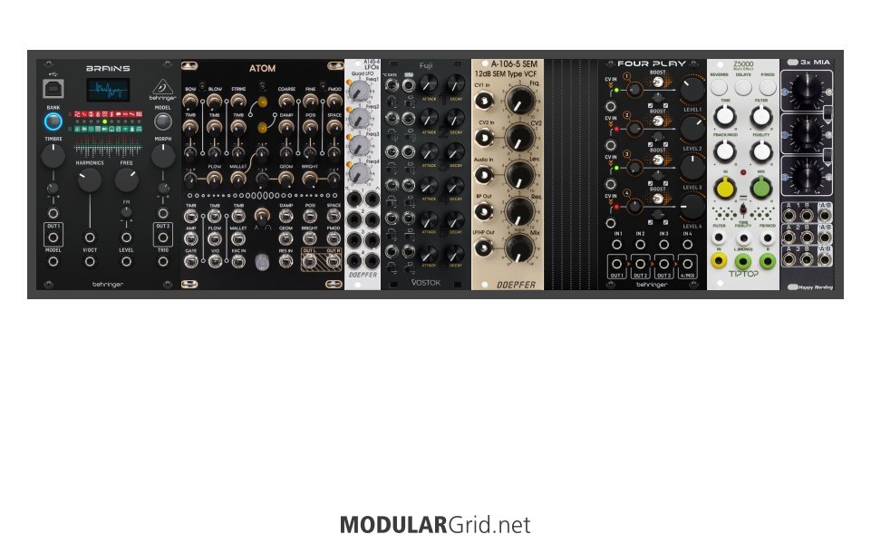 Power Consumption: 650 mA +12V | 320 mA -12V | 0 mA 5V | Depth: 55 mm | Price: $1,088 | Number of Modules: 8 | Data Sheet Achtung This Rack contains modules with incomplete power consumption specs: none