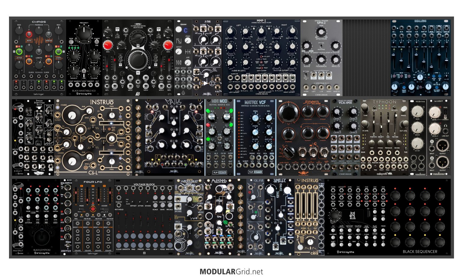 Power Consumption: 2431 mA +12V | 1143 mA -12V | 0 mA 5V | Depth: 43 mm | Price: $10,473 | Number of Modules: 33 | Data Sheet Achtung This Rack contains modules with incomplete power consumption specs: none