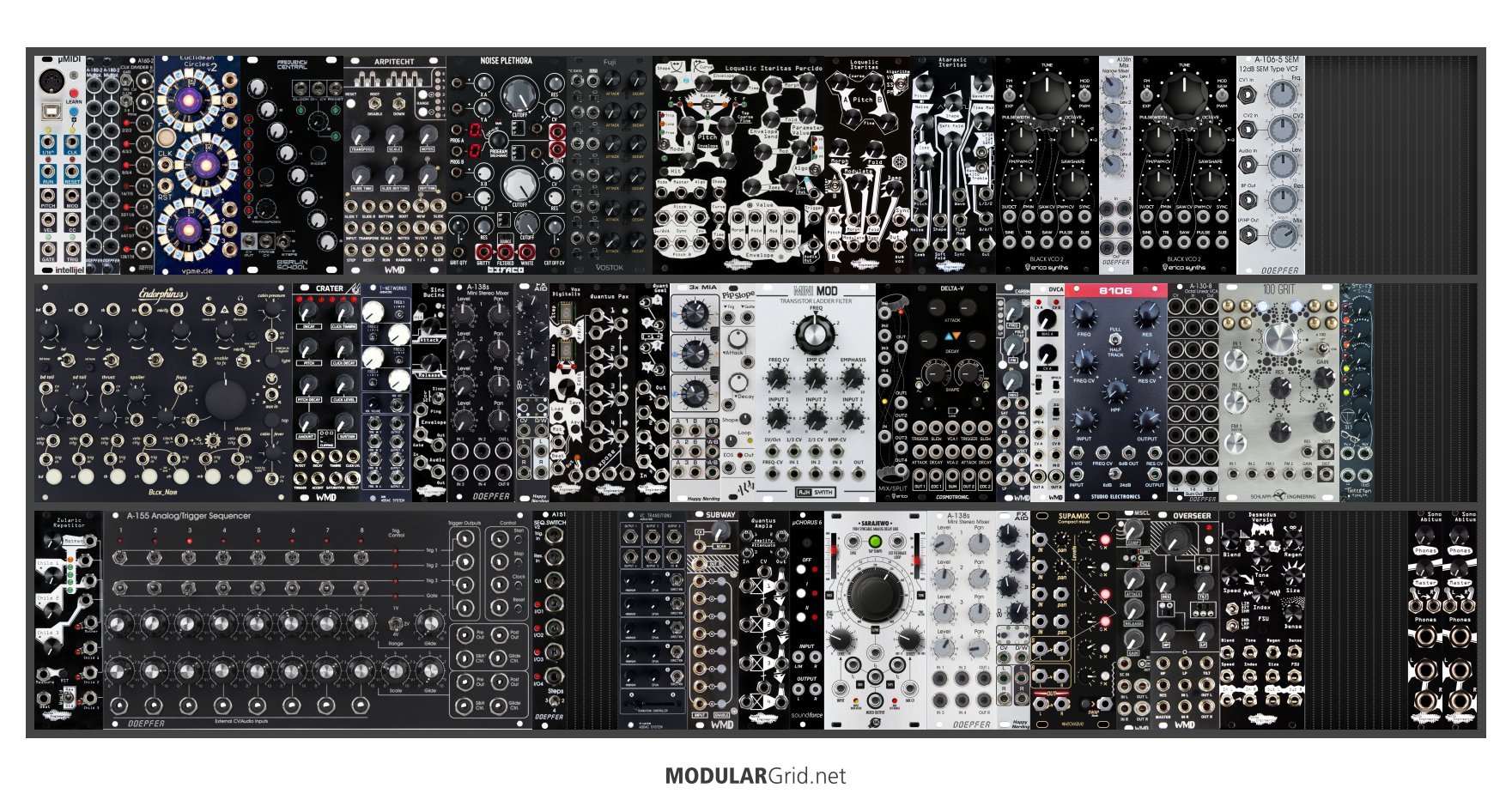 Power Consumption: 3191 mA +12V | 2047 mA -12V | 340 mA 5V | Depth: 55 mm | Price: $12,650 | Number of Modules: 52 | Data Sheet Achtung This Rack contains modules with incomplete power consumption specs: none