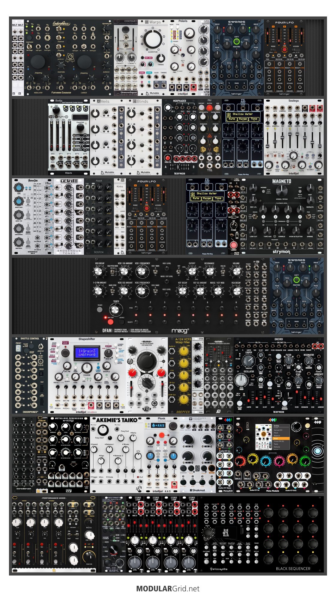 Power Consumption: 4501 mA +12V | 2404 mA -12V | 40 mA 5V | Depth: 52 mm | Price: $13,484 | Number of Modules: 46 | Data Sheet Achtung This Rack contains modules with incomplete power consumption specs: none