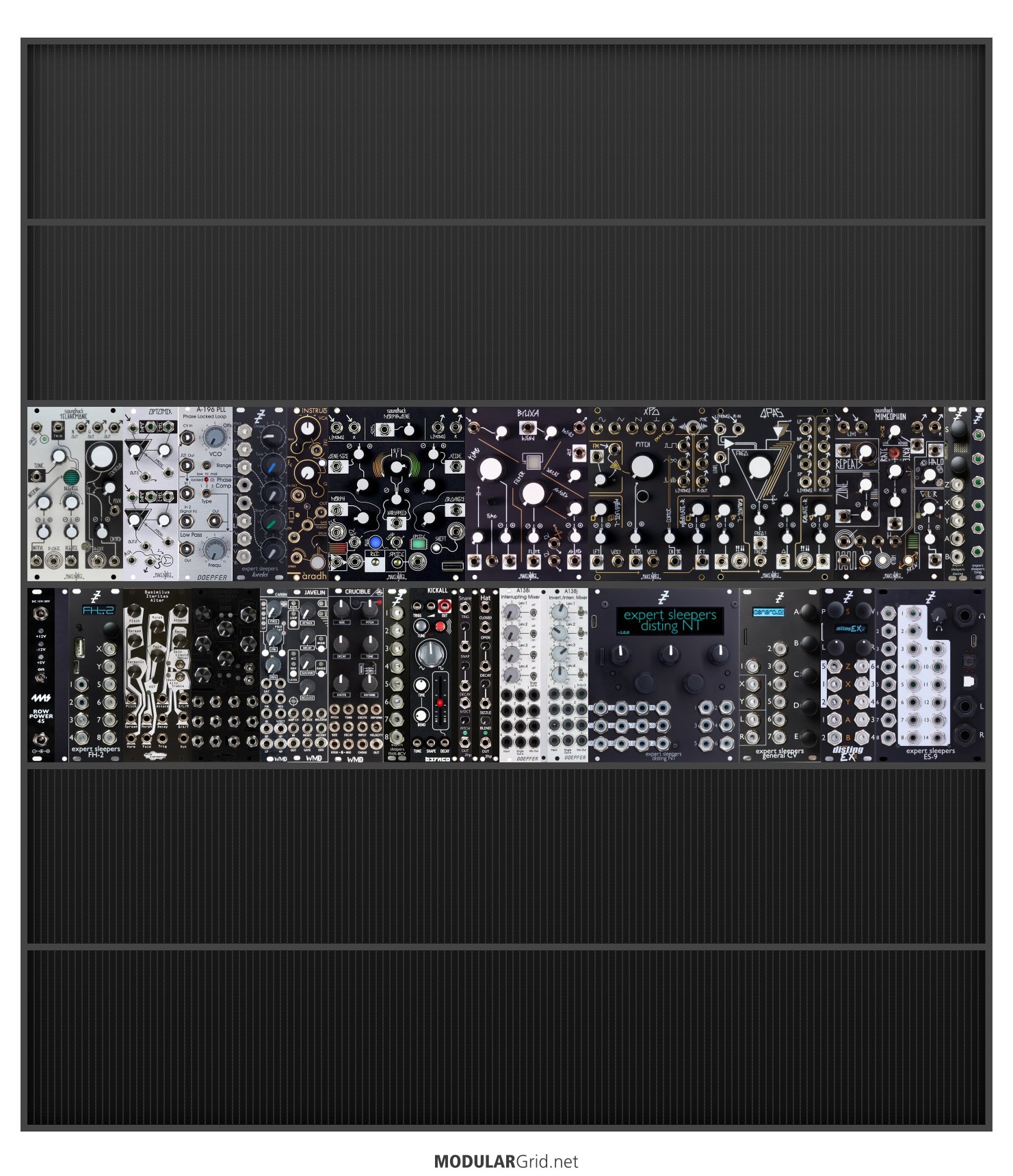 Power Consumption: 2872 mA +12V | 1241 mA -12V | 90 mA 5V | Depth: 50 mm | Number of Modules: 34 | Data Sheet Achtung This Rack contains modules with incomplete power consumption specs: none
