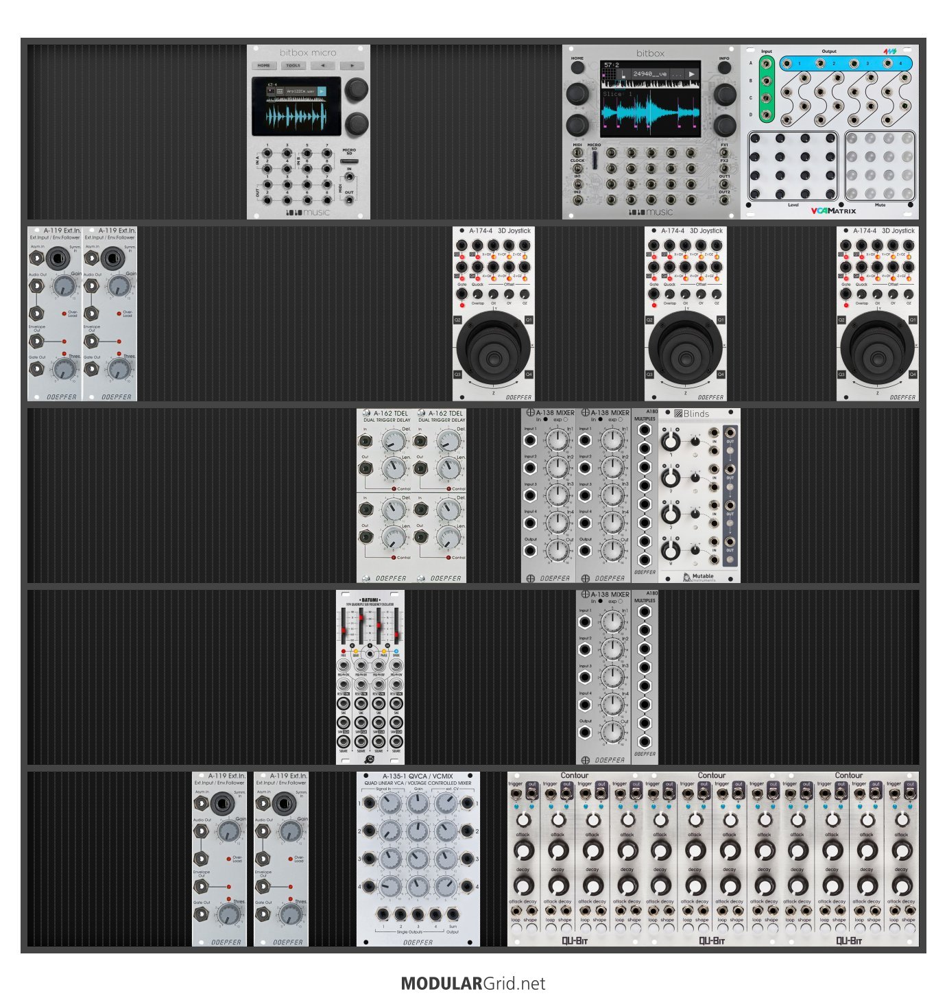 Power Consumption: 1701 mA +12V | 532 mA -12V | 0 mA 5V | Depth: 50 mm | Price: $4,548 | Number of Modules: 23 | Data Sheet Achtung This Rack contains modules with incomplete power consumption specs: none
