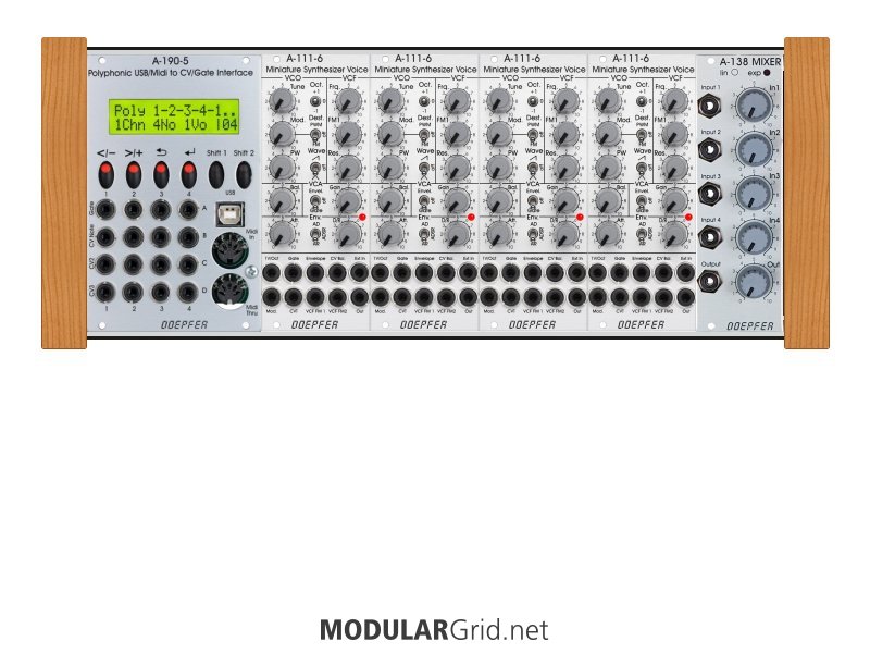 Power Consumption: 370 mA +12V | 290 mA -12V | 0 mA 5V | Depth: 55 mm | Price: $1,268 | Number of Modules: 6 | Data Sheet Achtung This Rack contains modules with incomplete power consumption specs: none