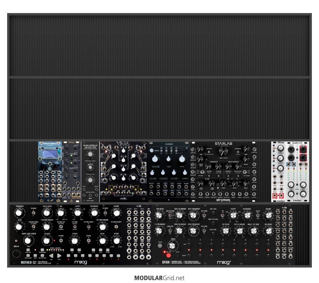 Power Consumption: 1235 mA +12V | 431 mA -12V | 0 mA 5V | Depth: 41 mm | Price: $3,086 | Number of Modules: 10 | Data Sheet Achtung This Rack contains modules with incomplete power consumption specs: none