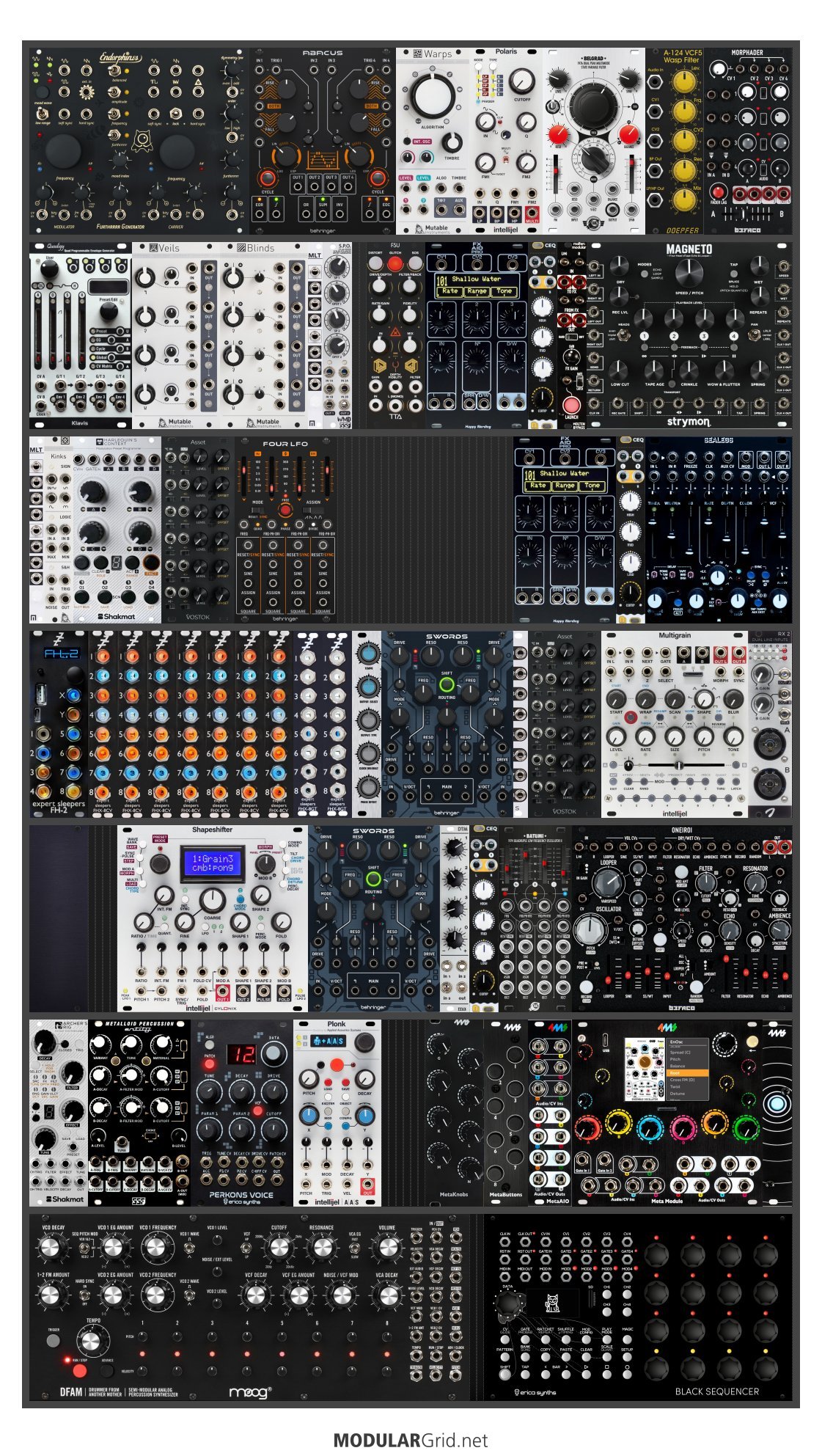Achtung This Rack contains modules with incomplete power consumption specs: Sealegs, MetaKnobs