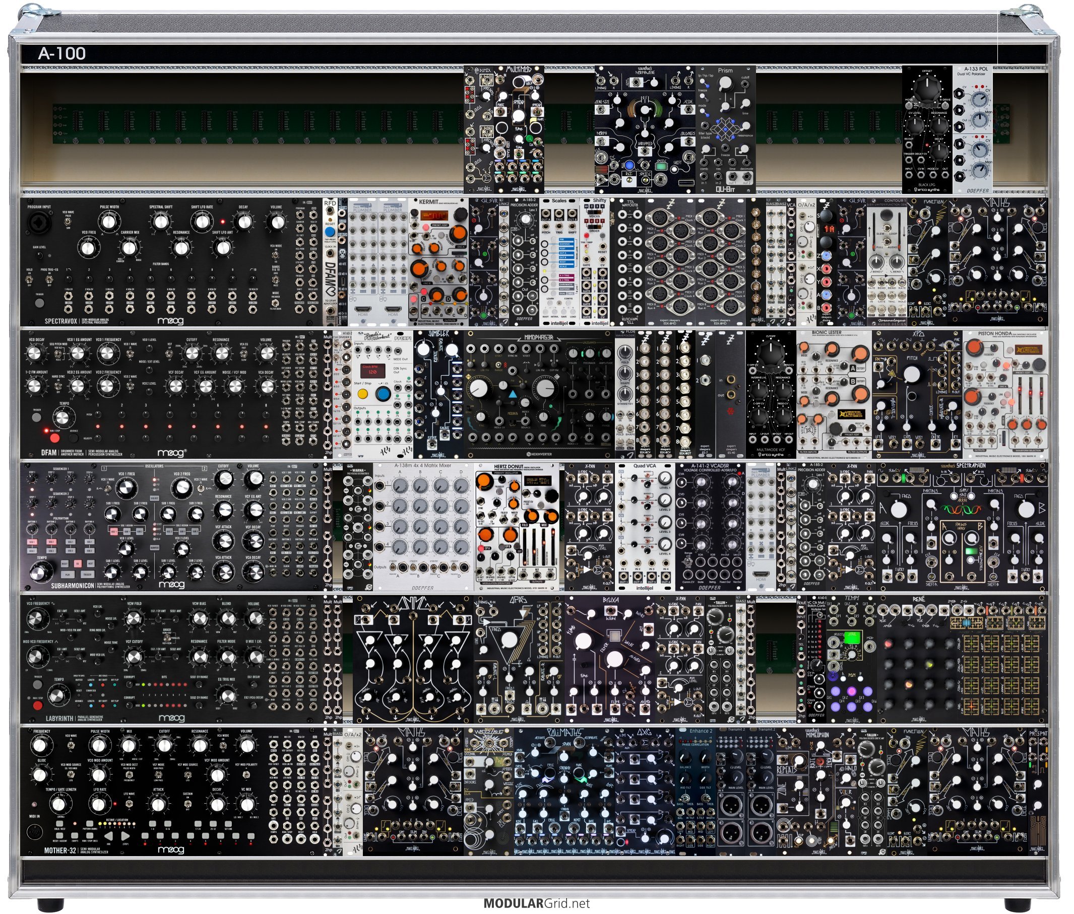 Power Consumption: 6659 mA +12V | 2754 mA -12V | 45 mA 5V | Depth: 70 mm | Price: $20,221 | Number of Modules: 92 | Data Sheet Achtung This Rack contains modules with incomplete power consumption specs: none