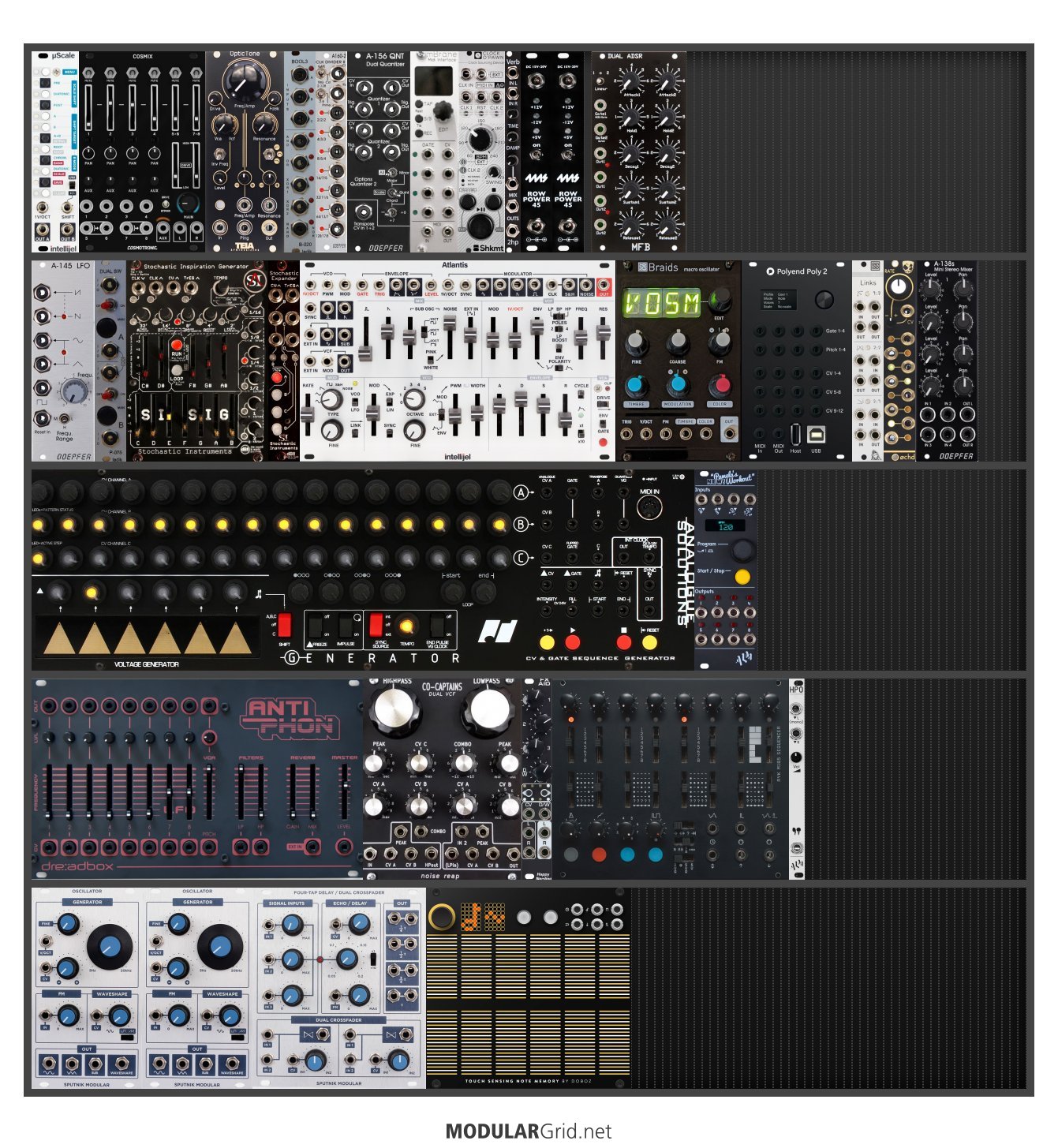 Power Consumption: 2105 mA +12V | 989 mA -12V | 100 mA 5V | Depth: 55 mm | Price: $7,477 | Number of Modules: 33 | Data Sheet Achtung This Rack contains modules with incomplete power consumption specs: none